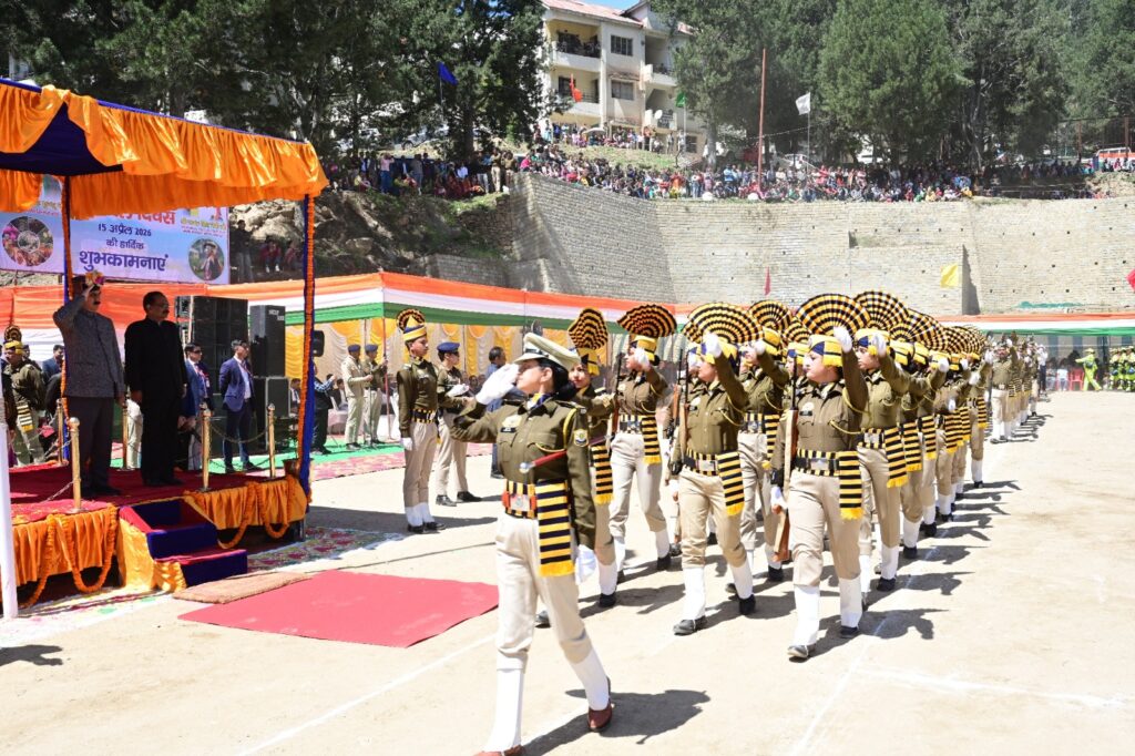 The parade, led by DSP Umeshwar Rana, featured contingents from the 6th Indian Reserve Battalion, Indo-Tibetan Border Police (ITBP), District Police Kinnaur, 2nd Indian Reserve Battalion (Women), Home Guards, Traffic Police, SDRF, and NCC units from local educational institutions, along with bands that added ceremonial grandeur to the occasion.