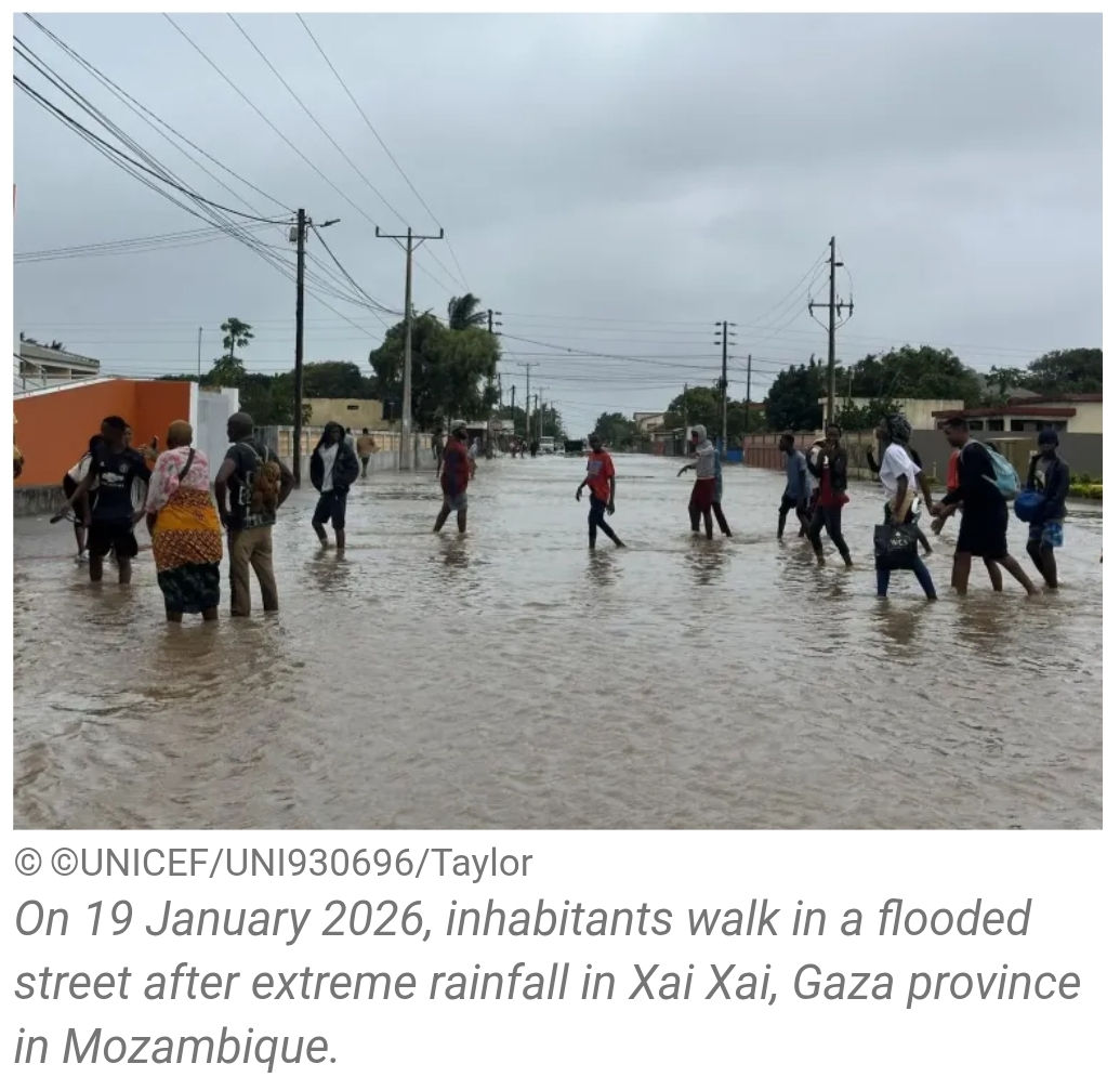 Severe flooding triggered by exceptionally heavy rainfall has plunged Mozambique into a rapidly escalating humanitarian emergency, placing hundreds of thousands of children at grave risk from unsafe water, disease outbreaks, and worsening malnutrition, UNICEF warned yesterday.